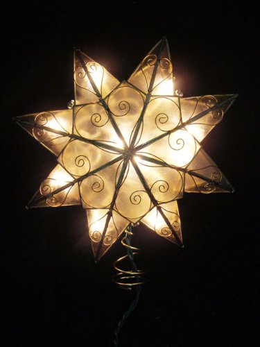 8" Lighted Capiz Shell 8-Point Gold Star Christmas Tree Topper - Clear Lights Review