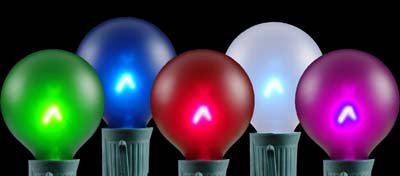 Our assorted globe-shaped, satin finish G50 Bulbs create a fun, unique look when decorating for any special occasion. Perfect for weddings, tents, patios, awnings and Christmas decor, these round, 7-watt, 130-volt bulbs will screw into a C9 socket and last for 3000 hours. Our G50 multi blue bulbs are sold in packs of 25. Read more...