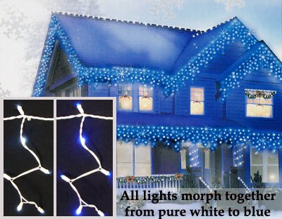 Set of 100 LED Blue/Pure White Color Changing Wide Angle Icicle Christmas Lights Review